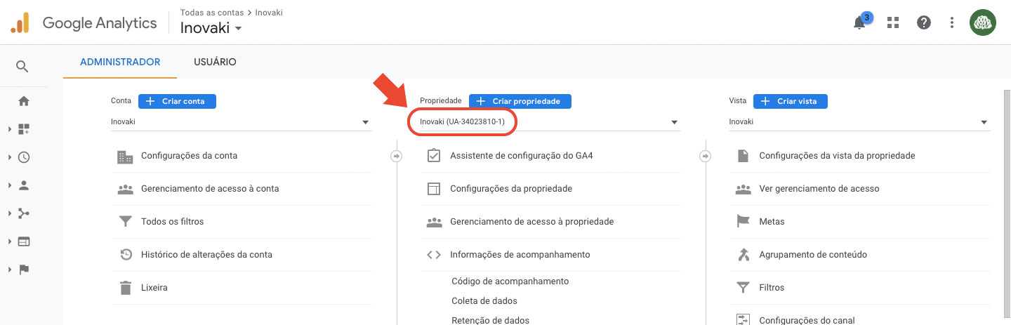Para encontrar o Código do Google Analytics, siga o passo-a-passo abaixo: