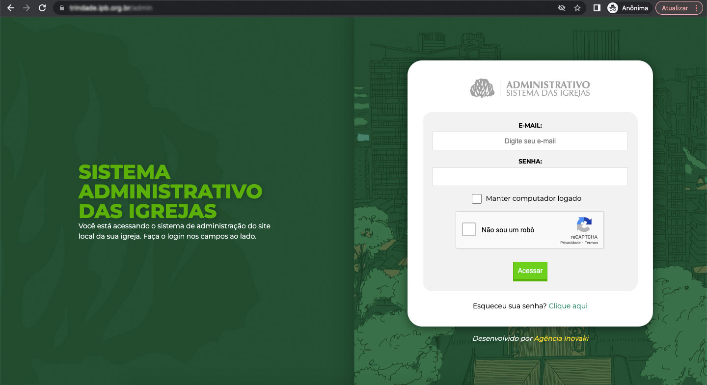 Após o recebimento dos dados de acesso à plataforma do site, o responsável conseguirá acessar o ambiente administrativo.